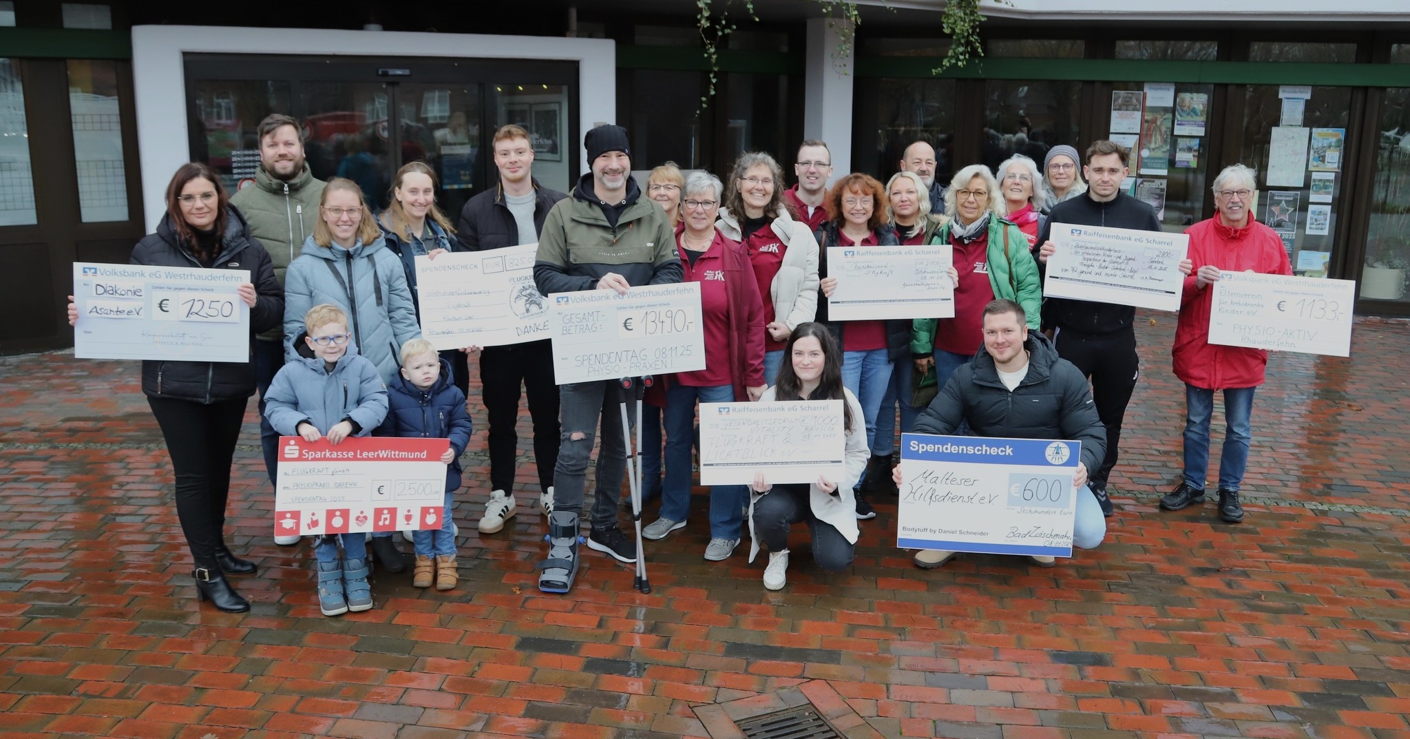 Jetzt wurde das Ergebnis des großartigen Tages aus diesem Jahr veröffentlicht, und die erarbeiteten Spendenbeträge in einem feierlichen Treffen vor dem Rathaus Rhauderfehn an die jeweiligen Empfänger übergeben. Um die Aufstellung nicht einfach abzuschreiben, haben wir euch die Übersicht der Spendensumme 2025 für Flugkraft als Foto mit angehängt. Und um euch richtig sprachlos zu machen, und euch zu zeigen, wie aus einer kleinen Idee etwas ganz Großes werden kann, auch noch eine Gesamtaufstellung, was für eine unglaubliche Summe von den wundervollen Physiotherapeutinnen und -therapeuten bereits über die fünf Jahre für Betroffene gesammelt, oder besser „massiert“ wurde.